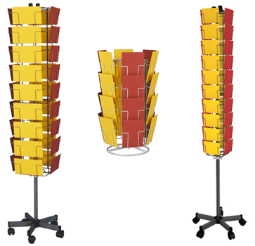 Varilla metálica negra con displays y portafolletos acrílicos, transparentes, regulables en altura.   Altura varilla: 1200 mm. Diámetro Base: 195 mm.