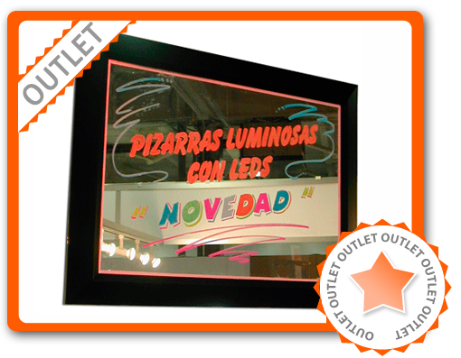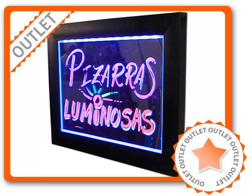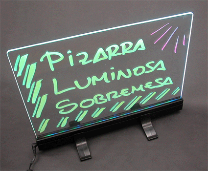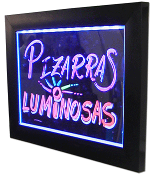 Pizarras con iluminación de LED para escribir con Rotuladores Fluorescentes, consiguiendo un efecto "neón" muy llamativo.Fáciles de usar y pulsando un botón pueden combinarse diferentes efectos luminosos (fijos e intermitentes) en colores. Ideales para Bares, Restaurantes, Heladerías,...