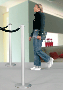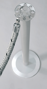 Postes de alta estabilidad fabricados en Aluminio Anodizado Plata con anilla superior cromada para 8 posiciones. Poste "Normal" Altura: 934 mm. Diámetro Base: 240 mm. Poste "Mini" Altura: 500 mm. Diámetro Base: 250 mm. Accesorios: - Enganches de terminación a pared para cordón (pincha aquí) |